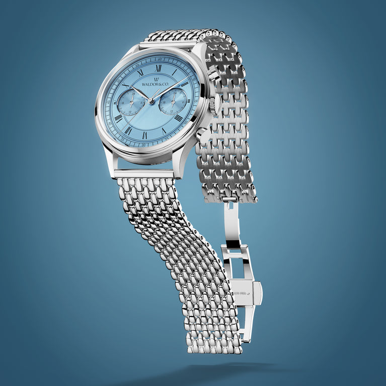 Dial: Blue sunray dial in brass