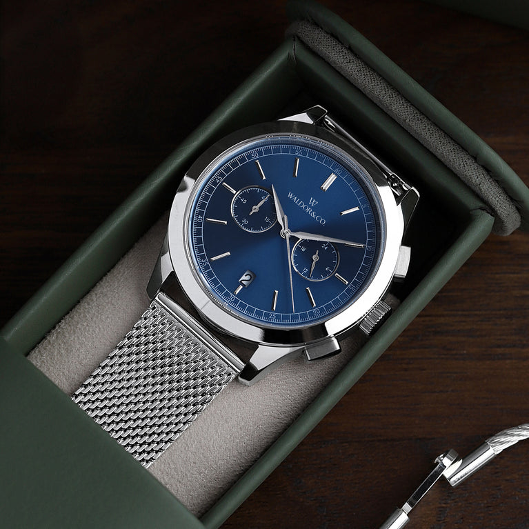 Inspired by the deeper waters surrounding Sardinia, the navy dial reflects the intensity found beyond the shoreline. Rich and immersive, the tone shifts with the light, revealing layers of depth that feel both powerful and composed. Like the open sea at its most captivating, it carries a quiet sense of adventure. Bold, confident, and impossible to overlook.