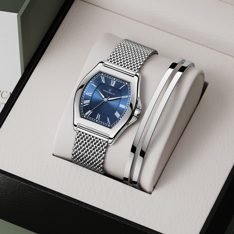 Strap: Mesh strap in rhodium-plated 316L stainless steel