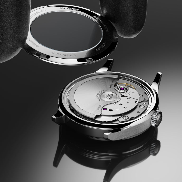 The domed mineral glass of the Continual 39 Amalfi is a noteworthy feature, crafted to offer both aesthetic appeal and functional resilience. Its curved shape not only adds to the watch's profile but also provides a visibility of the dial from multiple angles. This glass is further enhanced with an anti-reflective coating, which significantly reduces glare and reflections. The mineral composition of the glass ensures scratch resistance and durability, making it well-suited for everyday wear.